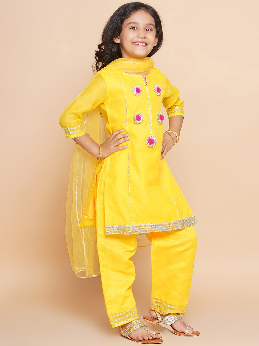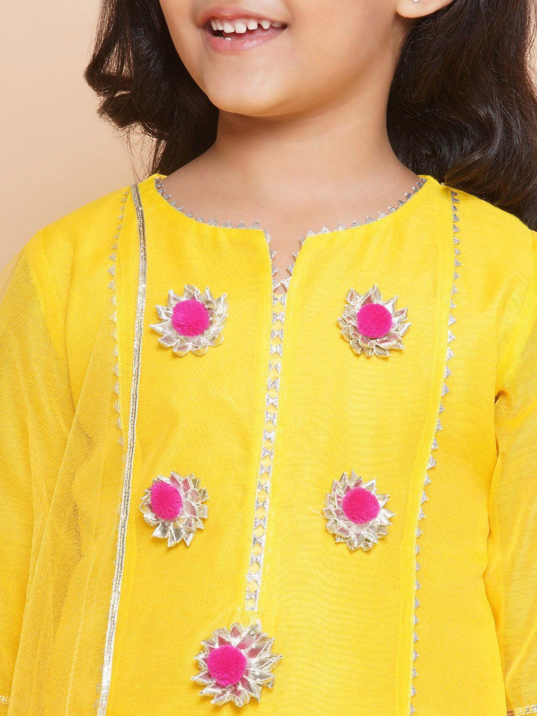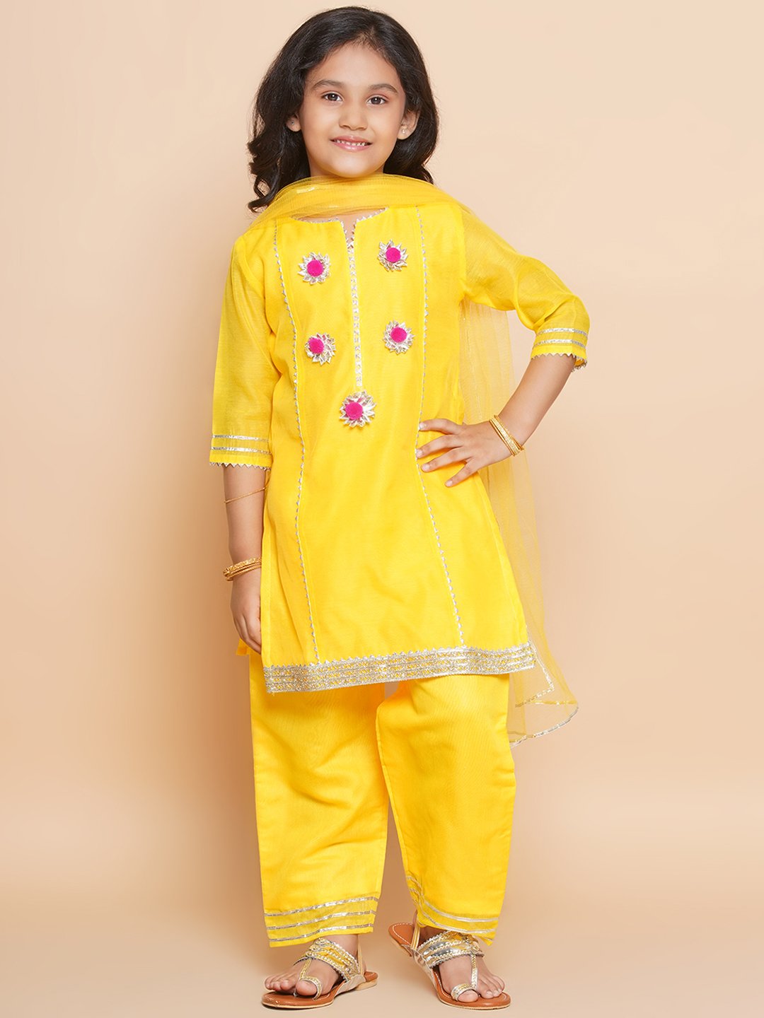 - Includes 3 pieces: 1 Kurta, 1 Plazzo, 1 Net Dupatta