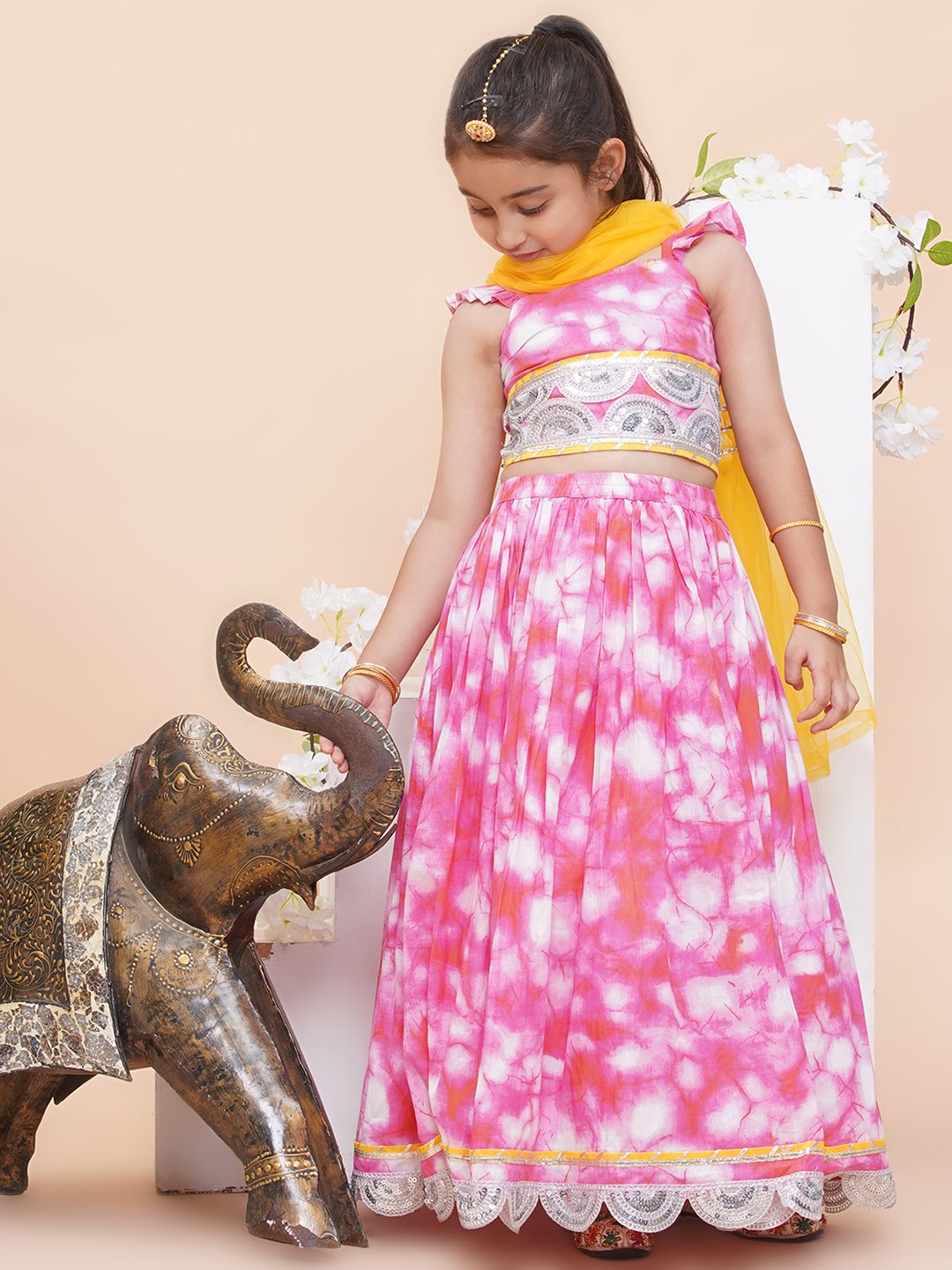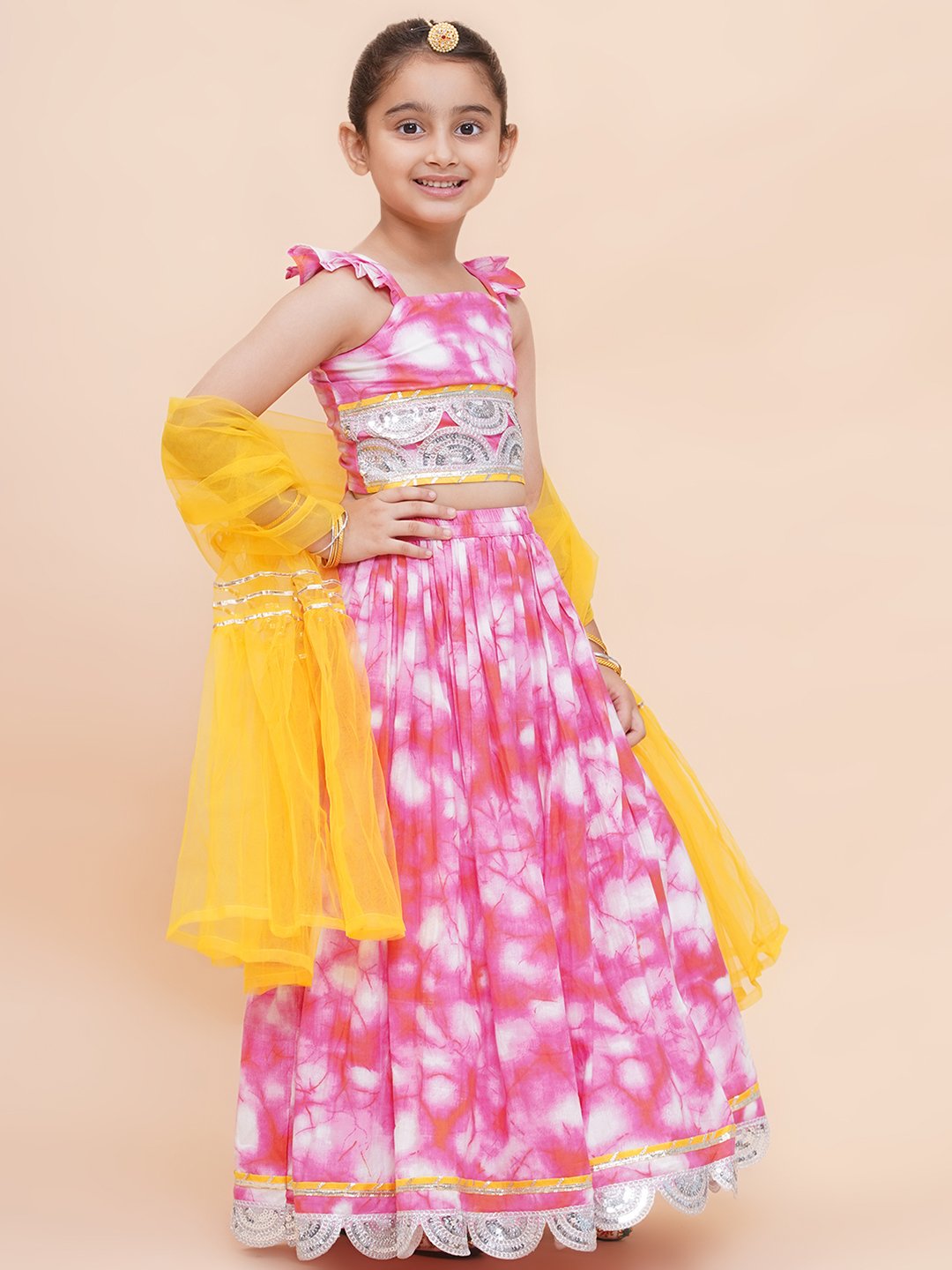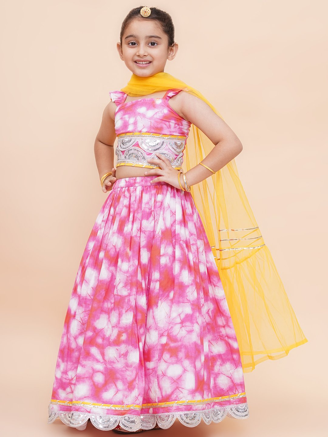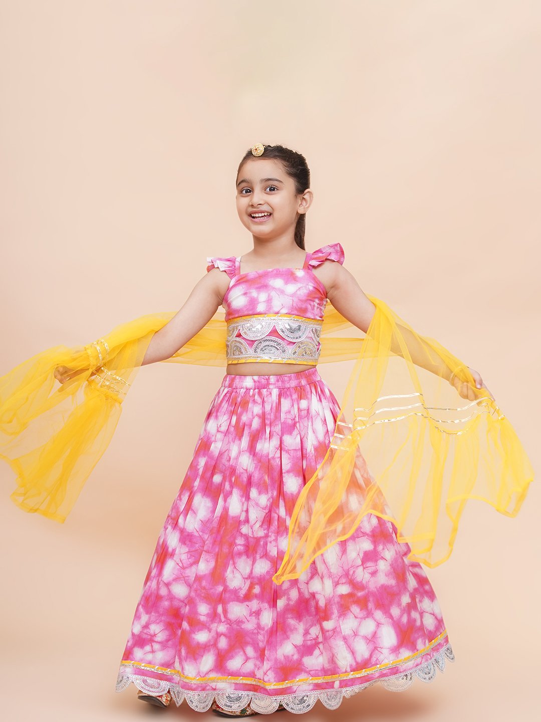 • Includes 3 pieces: 1 Lehenga, 1 Top, 1 Net Dupatta