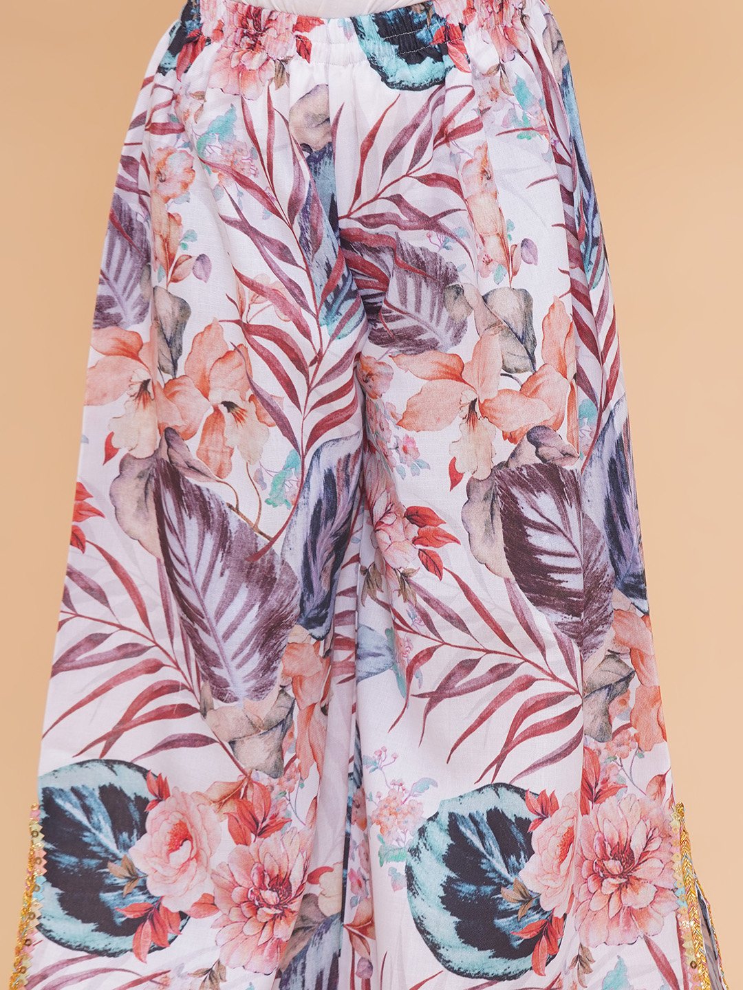Refresh your wardrobe with this trendy kurta and plazzo set featuring a stylish leaf print and crafted from soft cotton blend fabric for comfort.