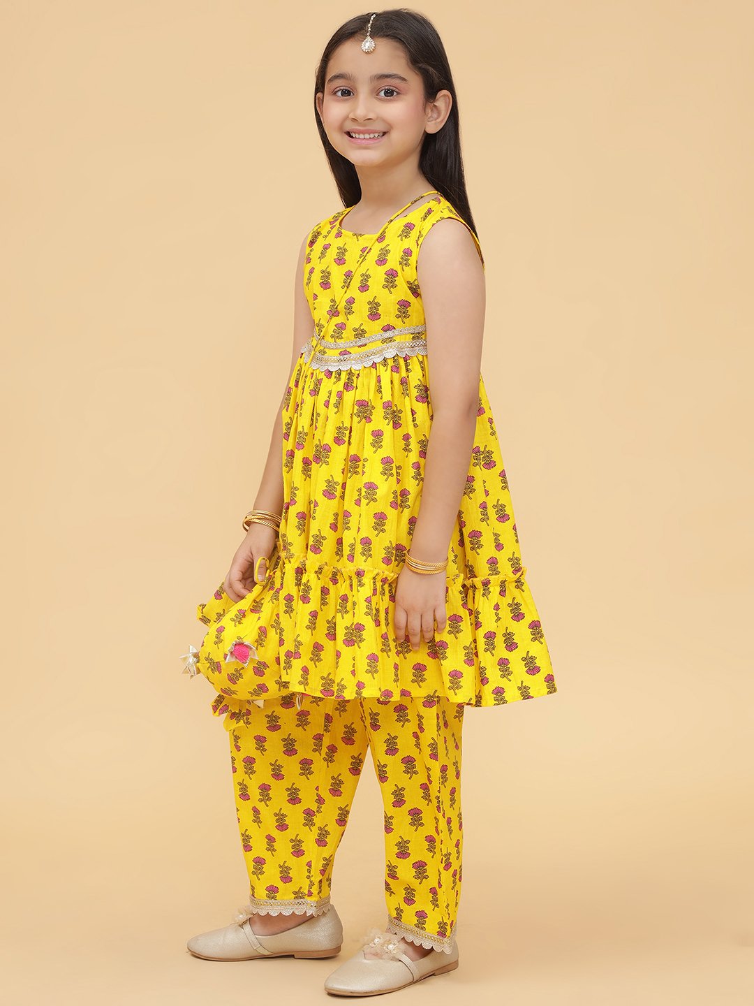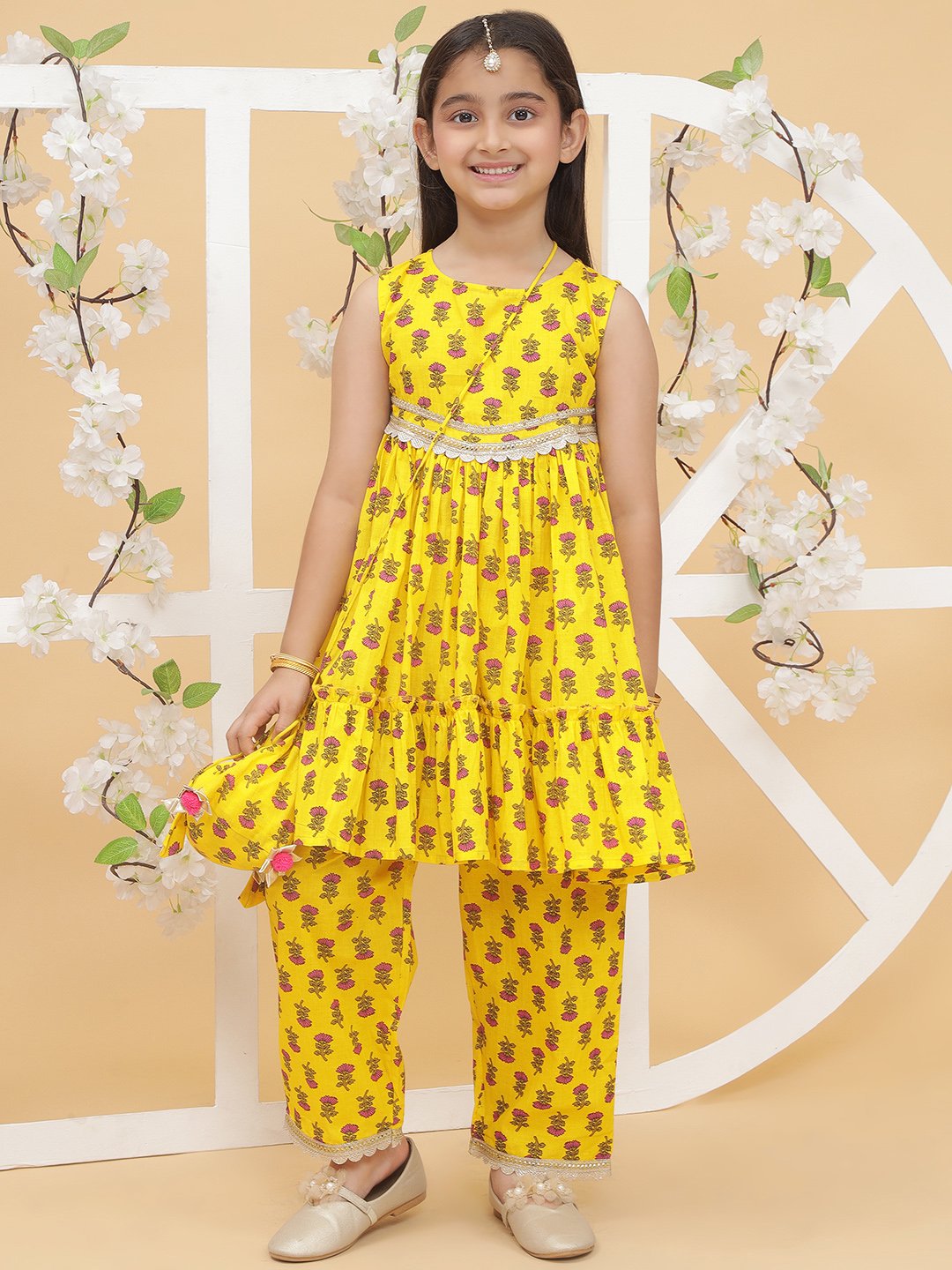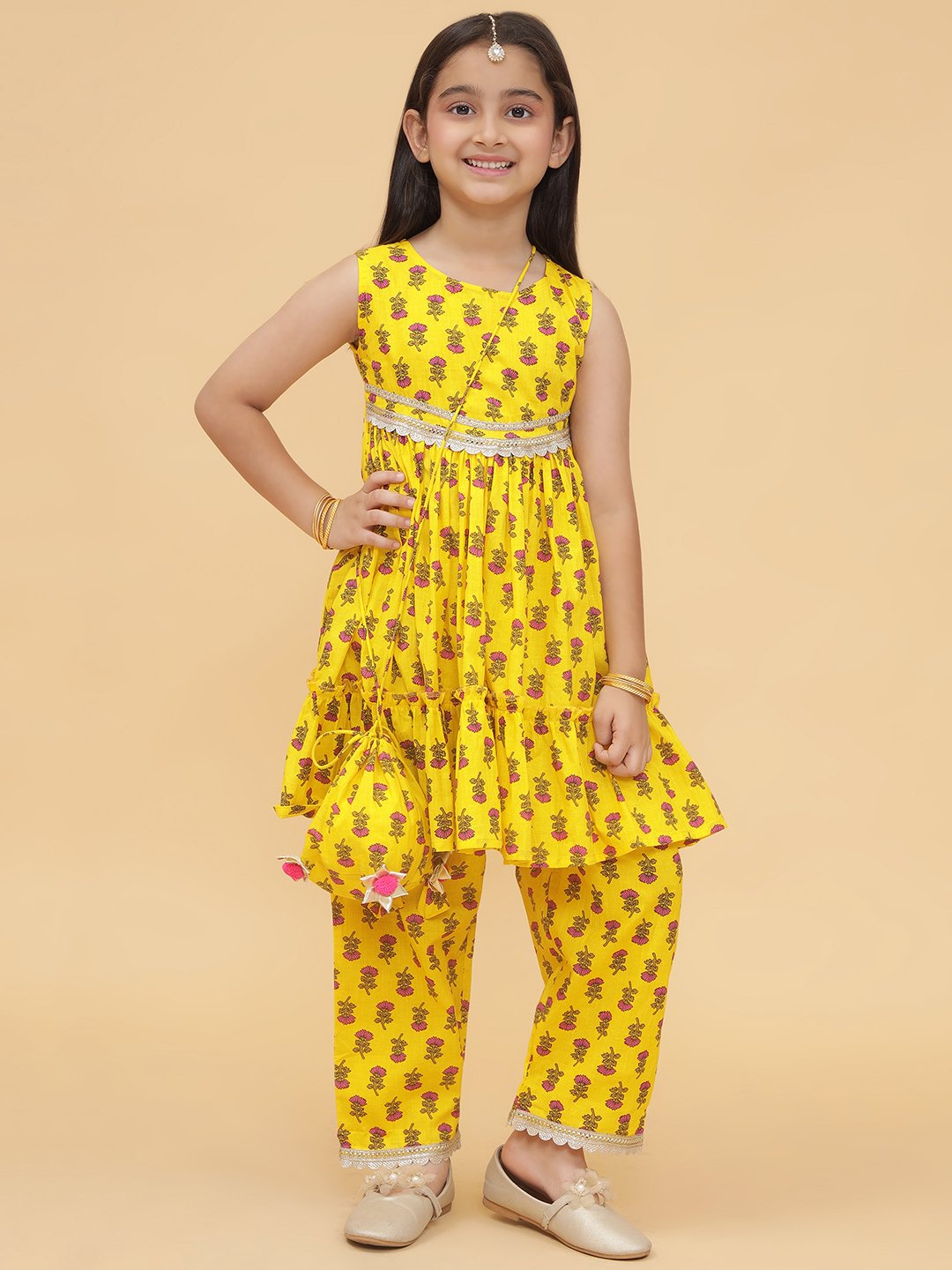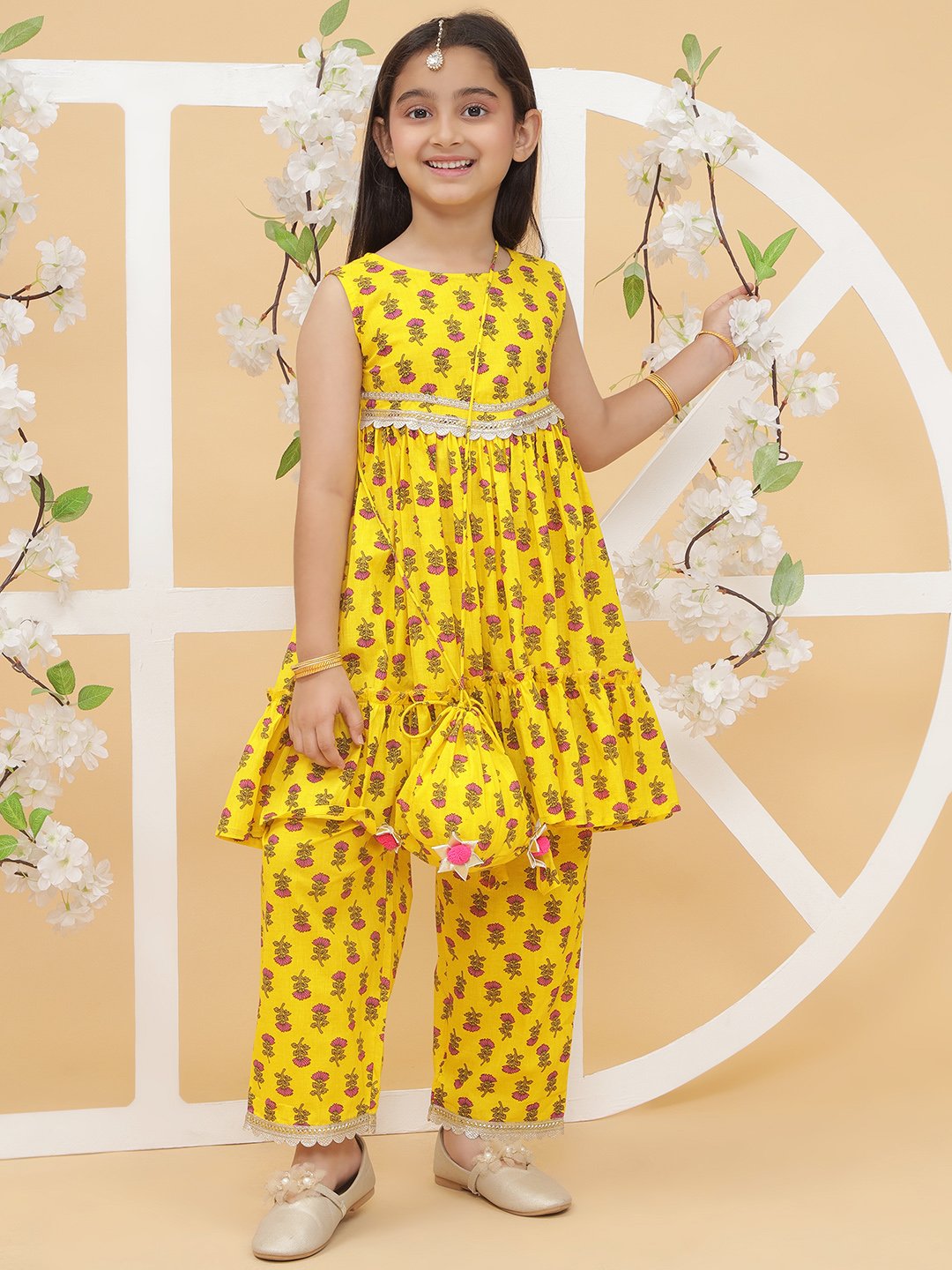 Modish Couture kurta and plazzo set with potli bag, designed for stylish and comfortable wear.