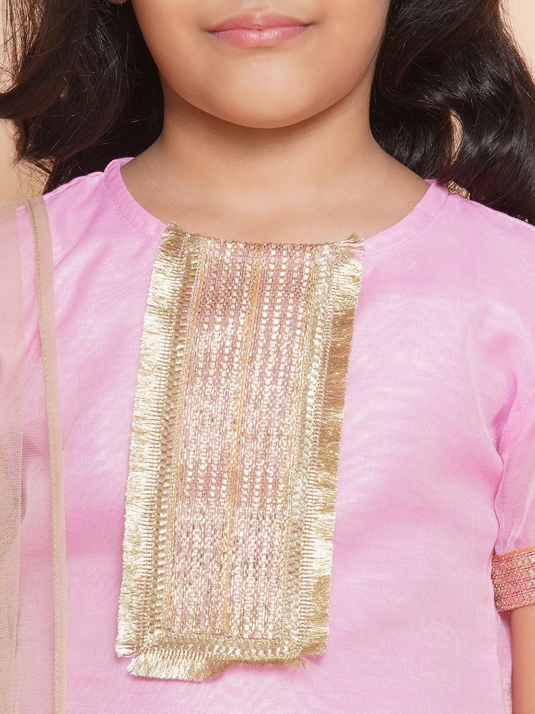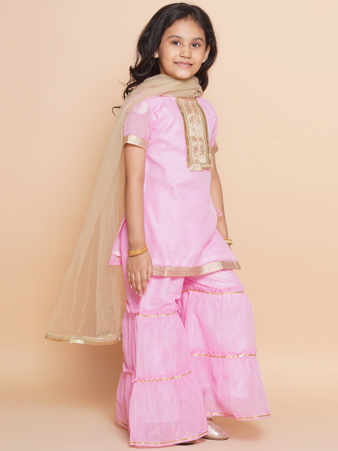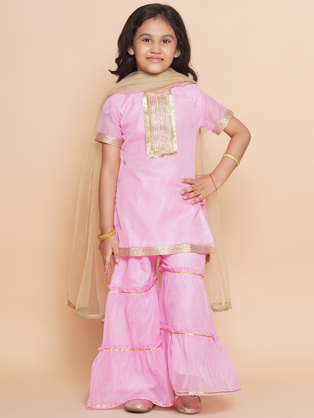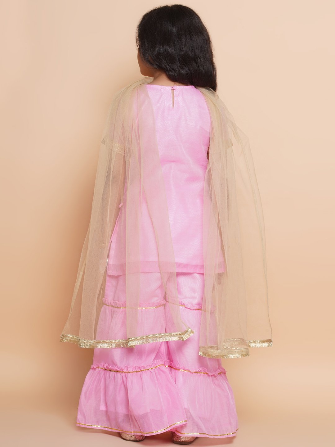 - Includes 3 pieces: 1 Kurta, 1 Sharara, 1 Net Dupatta