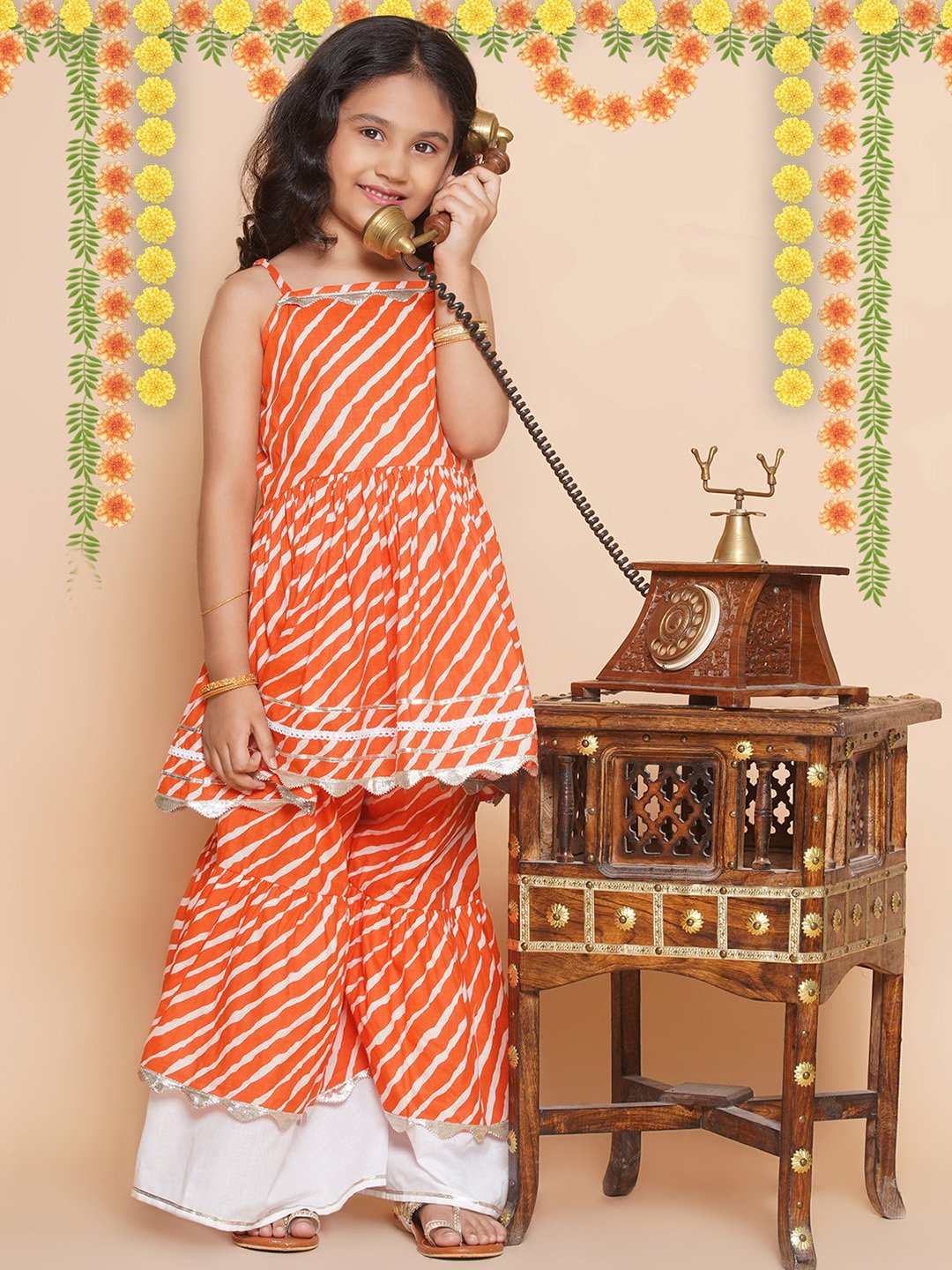- Features Leheriya print for a vibrant look