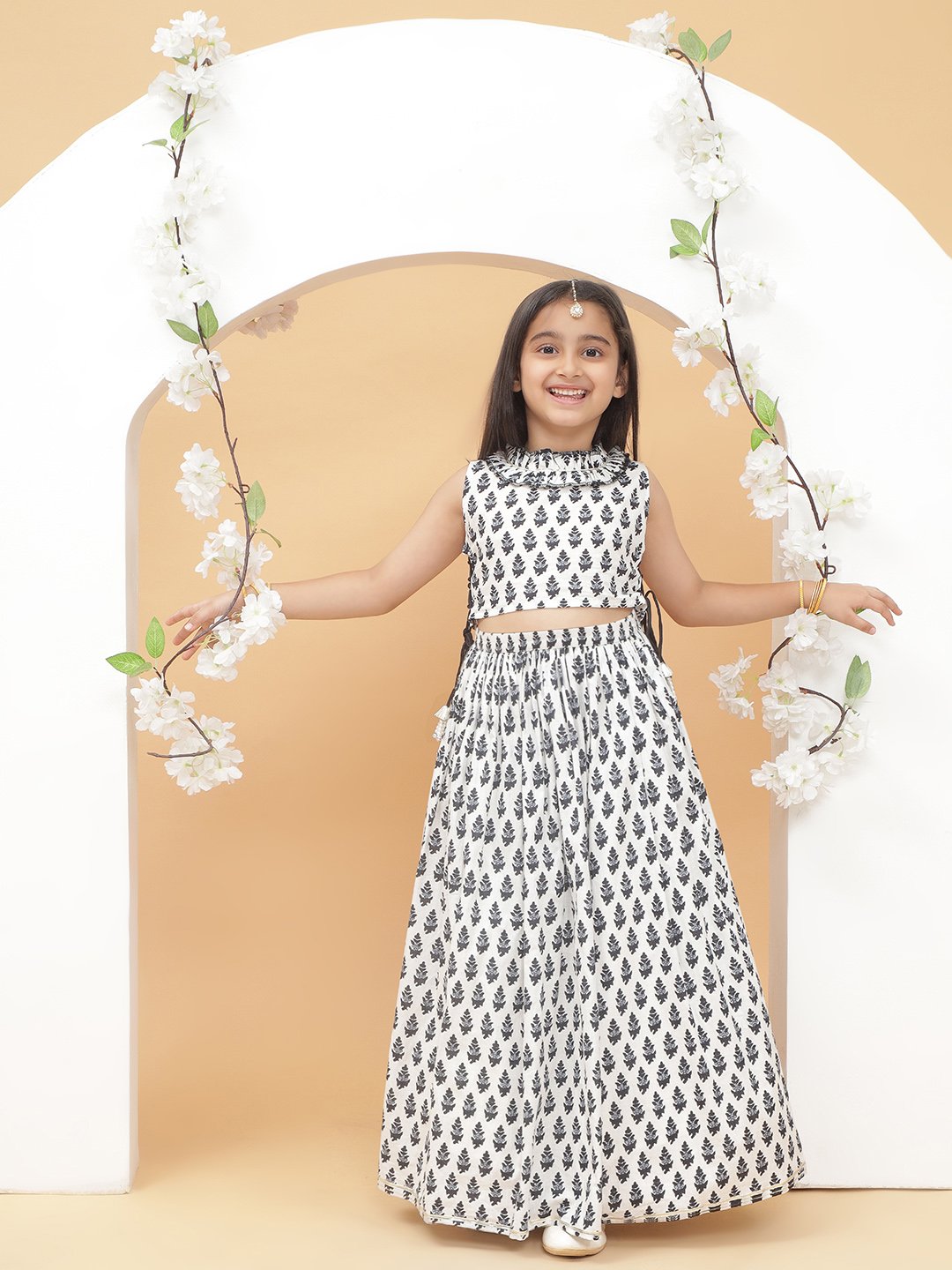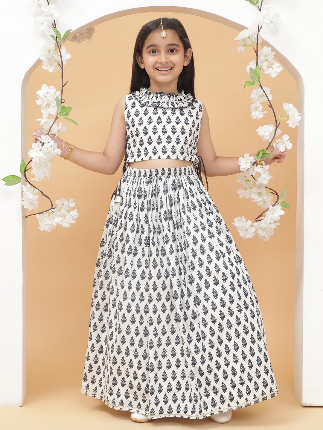 Modish Couture printed lehenga with top set made from cotton fabric for comfortable and trendy ethnic wear