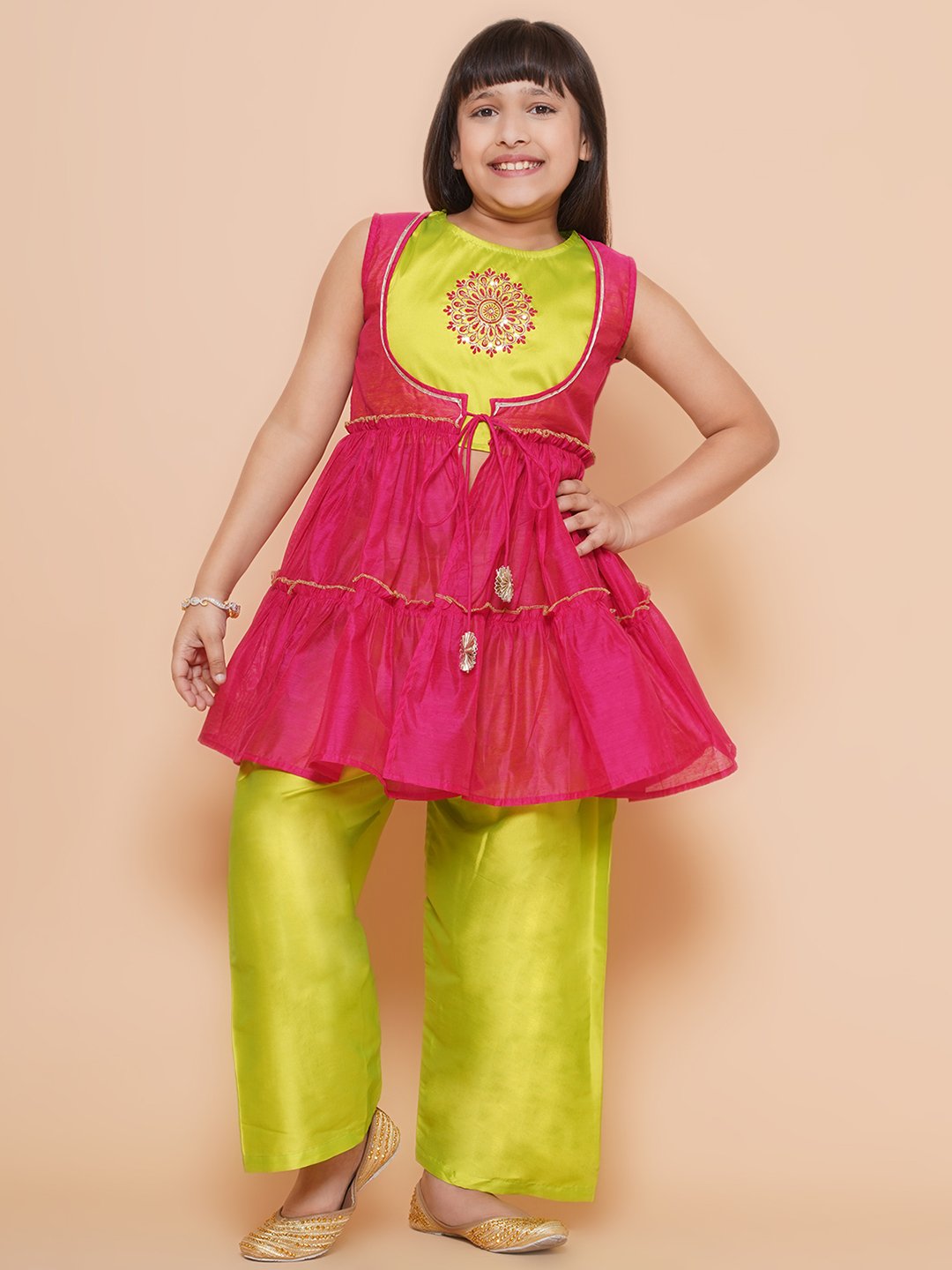 • Includes 3 pieces: 1 Top, 1 Plazzo, 1 Jacket