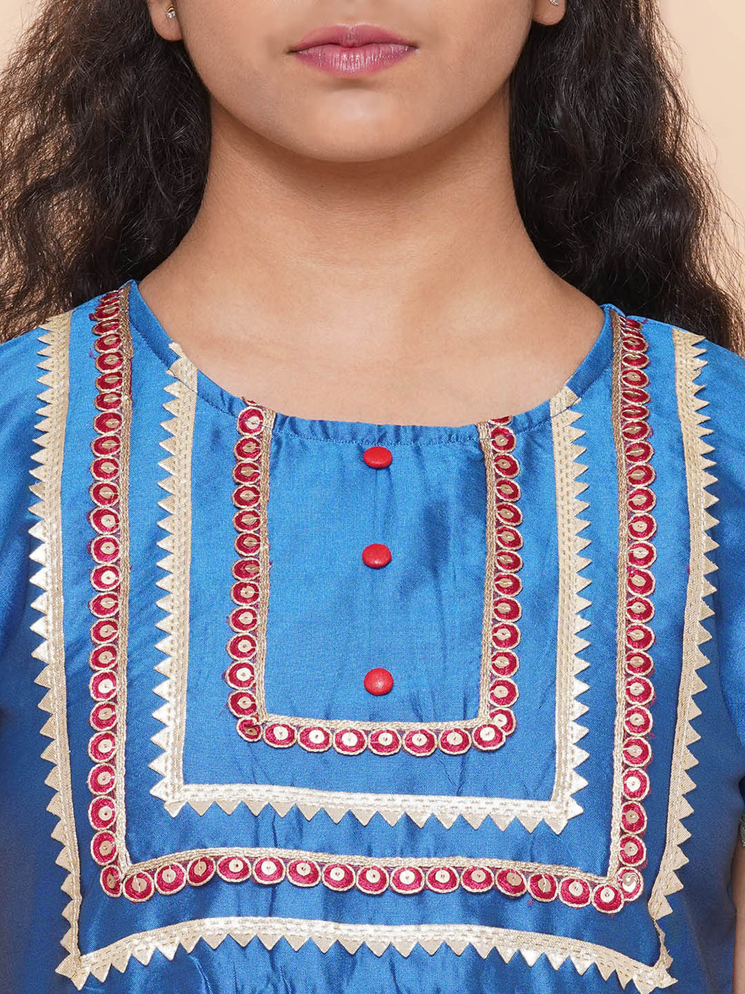 MODISH COUTURE Kid's Girl Stylish Fashionable Self Design Kurta & Tulip Pant Set (Teal)