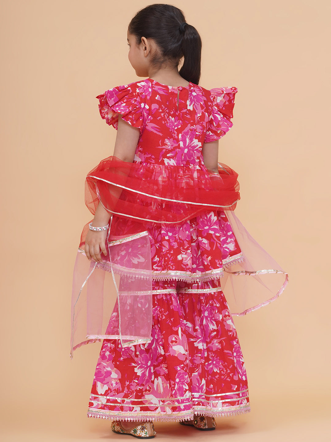 Modish couture Printed Kurta & Sharara with Dupatta (RED)